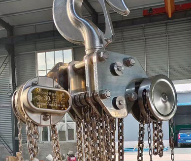 隧道里長期無陽光照射,空氣溫度相對較低,造成隧道內(nèi)陰冷潮濕。隧道挖掘過程中普通的機械設(shè)備無法長期使用,施工單位投入使用不銹鋼手拉葫蘆、不銹鋼電動葫蘆、不銹鋼單軌小車等工具進行重物搬運、設(shè)備起吊安裝等工作。